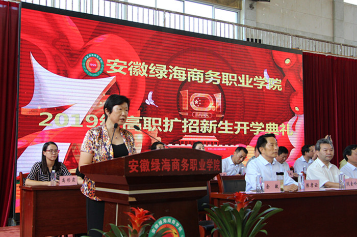 为了迎接这批特殊的新同学到来,学院体育馆二楼隆重举行2019级高职扩招新生开学典礼,省委宣传部原副部长刘飞跃,省教育厅原常务副厅长金辉,科学技术大学管理学院原副院长、省徽商发展研究院院长赵定涛教授,合肥工业大学经济管理学院洪进教授,安徽大学社会与政治学院吴宗友教授,合肥市政府副秘书长、合肥市退役军人事务局局长王强,安徽华商校友会名誉会长、安徽省合一投资控股集团董事长魏宜龙,安徽职业技术学院党委书记亓四华教授,365集团董事长、党委书记陈孝云,督导专员、党委第一书记江传瑞在前排就坐,典礼由学院常务副院长余敏主持。
