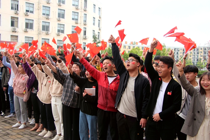 上午九点,参与拍摄的同学们分为多个方阵,同学们着汉服、航空高铁服装、校服等,胸口或脸颊张贴五星红旗标志。组织人员带领他们化妆整理仪容仪表,同学们积极配合排练、组织井然有序,年轻的面庞中透露着朝气蓬勃的精气神。整个活动连贯、生动,使整个学院氤氲着浓郁的爱国氛围。此次MV的拍摄进过程中一步弘扬了“爱国、进步、民主、科学”的“五四”精神以及爱国精神,引导加强大学生自觉培育和践行社会主义核心价值观,坚定信念,提高团体意识爱国意识。100年,虽然在人类的历史长河中只是弹指一挥间,然而,伟大的祖国发生翻天覆地的变化,到处都是日新月异的创造。 习近平总书记强调,五四运动是我国近现代史上具有里程碑意义的重大事件,五四精神是五四运动创造的宝贵精神财富。今天,我们纪念五四运动、发扬五四精神,必须加强对五四运动和五四精神的研究,以引导广大青年在五四精神激励下,为决胜全面建成小康社会、夺取新时代特色社会主义伟大胜利、实现中华民族伟大复兴的梦不懈奋斗。
