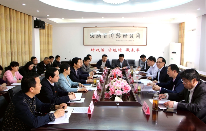 常务副院长余敏代表学院就办学方向,办学条件,现代学校制度建设,教育教学,办学行为,资产与财务管理,产教融合、创新人才培养等方面全面汇报了学院2018年度工作。 在认真听取汇报后,专家组与学院领导进行了深入的交流和探讨。对学院党建思想政治工作、师资队伍建设、财务资产状况、图书馆藏、后勤保障等相关资料进行查验,并召开教师和学生代表座谈会,听取师生对学院发展的意见和建议。(苏  勇  审核:张以亭)