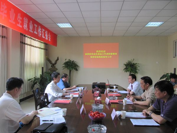 在随后的学院毕业生就业工作汇报会上,我院宋凡副院长代表学院向调研督查组汇报了我院办学理念、就业工作指导思想、组织建设以及围绕就业工作开展的一系列举措及成效等六个方面情况。自办学以来,我院始终将就业工作置于首要地位,强化就业工作组织领导责任;坚持就业先行,着力构建就业工作保障机制;以市场为导向,加强应用性学科专业建设,着力提升学生综合素质,创新人才培养模式;加强就业指导与培训,注重创业教育,提供实践平台;以就业为契机,积极拓展就业市场,推进校企合作,搭建毕业生与就业单位沟通桥梁;不断强化服务意识,全程指导毕业生就业,扶持毕业生创业,落实毕业生就业跟踪回访,帮扶贫困学子,以实际行动诠释我院“成就一学子,幸福一家庭”的办学使命。在我院不断努力推动就业工作进程下,现已取得明显成效。截至到5月,我院2010届毕业生平均就业率已达82%,部分系部就业率高达93%—95%。我院信息系、外语系主任也分别在会上对本系学生实习、就业情况作了详细汇报。
