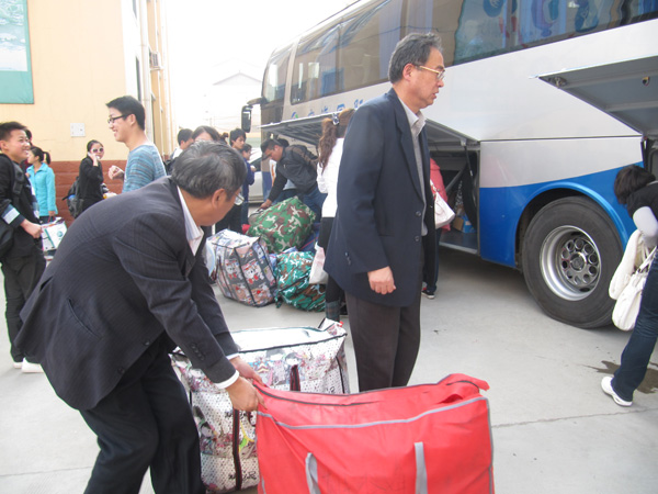 当天下午,我院师生为实习归来的学生举行了热烈的欢迎仪式,同学们站在学院大道两侧,手持彩带,振臂高呼“欢迎回家”,走下车的学子们个个精神抖擞、神采奕奕,与前来迎接的老师同学们热烈拥抱,学院领导还上前为实习生们搬运行李。