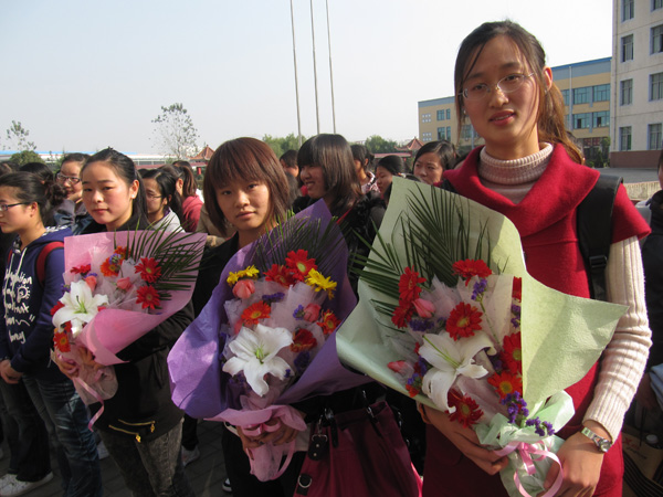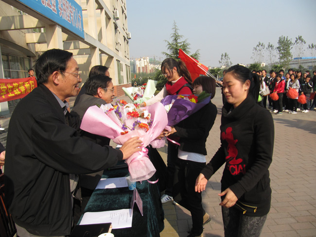 接着,学院在广场为他们举行了一场简短而又隆重的欢迎仪式。仪式上,学院领导们对实习生几个月来的工作给予了充分的肯定,并对他们全身心地投入服务世博会中,展示绿海学子良好的精神风貌表示感谢,希望他们将此次经历作为人生中最宝贵的财富,继续发扬世博精神、秉承绿海文化,以高昂的斗志投入新学期的学习生活中去。
