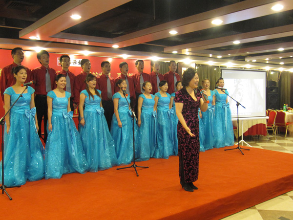 上海绍兴饭店管理有限公司总裁余红霞在答谢晚宴上引吭高歌