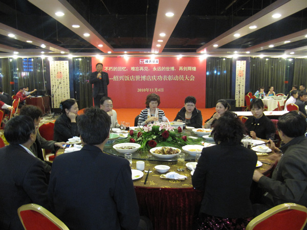 11月4日下午,我院计承光副院长及外语系主任刘月华、副主任童传富出席了上海绍兴饭店管理有限公司召开的世博店庆功表彰大会。