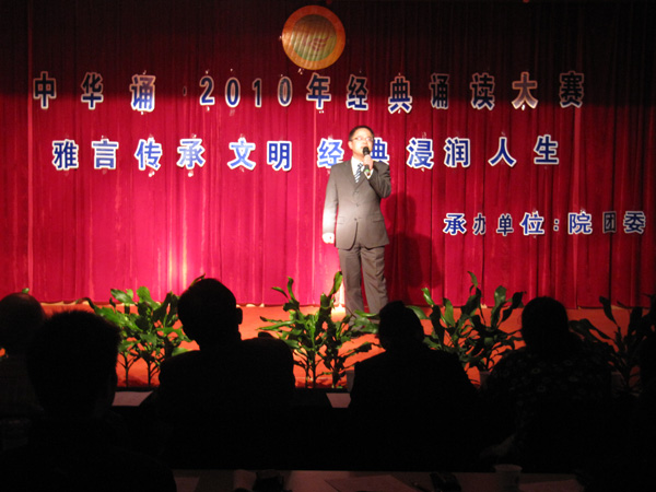 为弘扬中华传统文化,提升广大师生的语言表达能力,10月28日晚,我院在学术报告厅五楼隆重举行“中华诵•2010经典诵读大赛”。