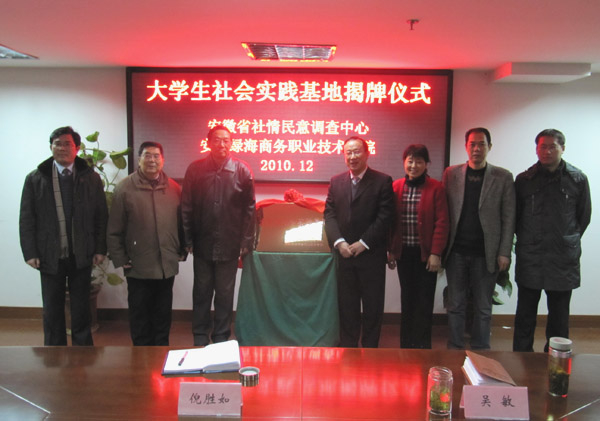 12月24日,学院常务副院长丁元生率管理系、教务处有关负责人一行来到安徽省社情民意调查中心,出席我院与省社情民意调查中心大学生社会实践基地揭牌仪式。