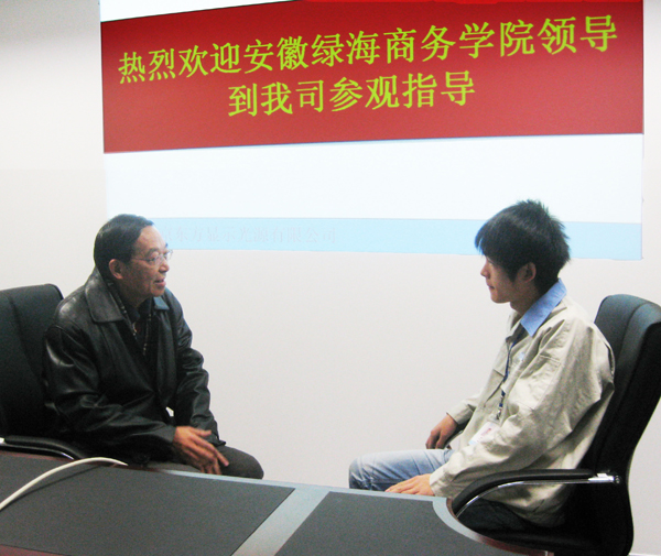 签字仪式结束后,参加签约仪式的丁元生副院长一行还看望了我院在京东方实习的学生代表,与他们亲切交谈,仔细询问了他们在实习期建的学习、生活和工作情况。同学们也对学院提供这样好的实习机会表示感谢,纷纷表示将在实训中努力工作,好好学习,不断提高自己的就业能力。