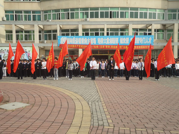 5月4日清晨,绿海学子在科技楼广场举行盛大集会,为隆重纪念成立九十周年,五四运动九十二周年,积极响应团、全国学联关于开展“弘扬“五四”精神 青春献给党”的主题活动的启动仪式。