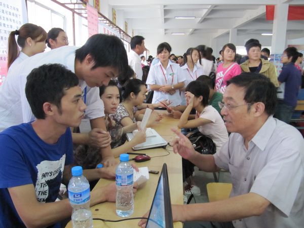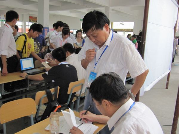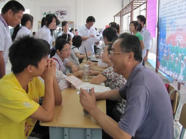 体育馆报到大厅内,各系新生报到处、缴费处、宿舍安排处、饭卡办理处、咨询处,区域划分明确,标牌提示醒目,令人一目了然。在工作人员的相互配合、共同努力下,各区域工作进展有条不紊,在志愿者的协助下,工作台前排起一条条整齐的队伍,秩序井然有序。新生在志愿者的帮助下,按照报到流程,迅速办理入学手续,领取生活用品。各系部主任均守候在现场,热情地为新生及家长答疑解惑。常务副院长丁元生、副院长孙太清也亲临报到现场,巡视、指导工作,并与新生及家长亲切交谈。