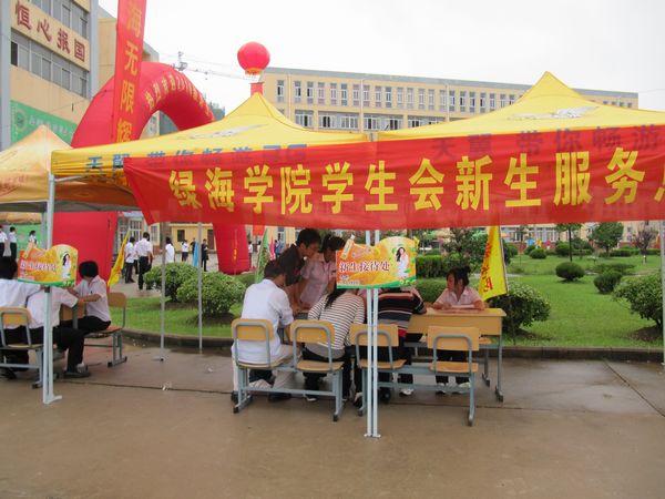 为营造良好的迎新氛围,学院展开了全方位的立体式宣传。报到现场,向广大新生分发校报迎新专刊;宣传橱窗中,悬挂起学院宣传册《阳光下的绿海》;以生动的图片和文字介绍全面展示了学院的办学特色和文化内涵,使新生及家长对学院有了进一步的深入了解。同时,广播台循环播送对新生的寄语《让青春从绿海起航》和《致新生家长的一封信》;道路两旁悬挂着各系部的欢迎标语“满腔热情迎莘莘学子,呕心沥血育商务精英”“起点更新、校园更新、生活更新、开启精彩大学路”……一句句真诚的话语和美好的祝愿,使广大新生真切的感受到来自学院浓厚的人文关怀。