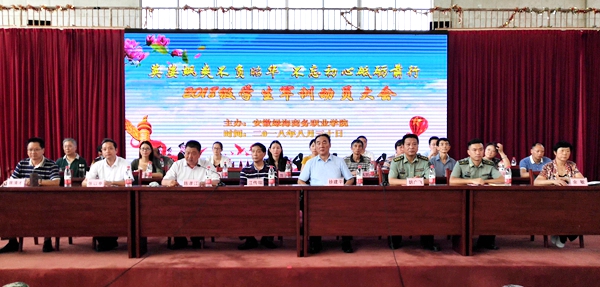 8月30日上午,365集团2018级新生军训动员大会在大学生活动中心二楼举行。督导专员、党委书记江传瑞,院长徐建平、肥西县人武部政委胡广飞、副院长陈孝江、肥西县人武部后勤保障科科长马家文、党委副书记张以亭、院长助理余敏,各系部处室负责人,参训部队有关领导、教官,全体新生辅导员、参训学生参加了大会。大会由院长助理席清才主持。