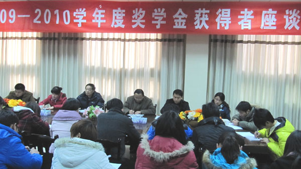 我院获得2009——2010学年度奖学金3人、励志奖学金71人。座谈会上,获奖同学纷纷表示将以此为契机,进一步努力学好科学文化知识,通过自身行动,带动周围的同学们努力学习,在我院的学风建设中发挥应有的作用。此外,他们还表示要以感恩之心更加努力学习,用实际行动回报伟大祖国,回馈社会。