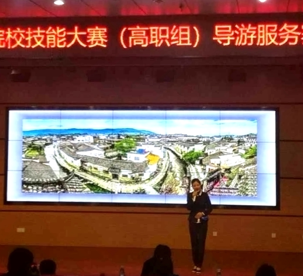 比赛现场,旅游系马超和赵英子老师指导的刘雪婷、王慧两位同学,在导游服务赛项中,凭借落落大方的形象,从容道来的自信,娓娓讲述的口才让在座的评委老师们眼前一亮,耳目一新,最终分获二、三等奖。由基础部汪芳和陈稳新老师指导的徐媞同学,在历时三个月的刻苦训练,以历年比赛真题为模板,选手写稿,老师修改,经过不断训练和不懈努力,最终获得英语口语大赛三等奖。