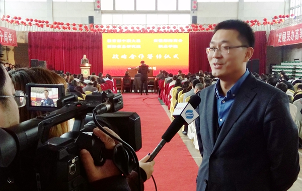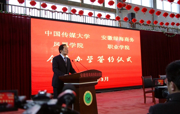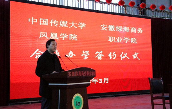仪式上,陈孝云热情致辞。他表示,自去年以来,365集团与德国IB教育集团签署中德合作办学战略协议后,积极谋划,创新教育模式,拓宽教学思维,不断加强与行业企业的联系,陆续与五家教育上市公司签订产教融合、校企合作战略协议。目前,校企合作协同育人在绿海学院蔚然成风,今后学院还将广泛汇聚社会资源,深化产教融合,促进新产业蓬勃发展、新动能持续壮大、新人才不断涌现。传媒大学凤凰学院具有很好的专业设置,超前的办学理念,很多专业在国内都起到引领示范作用,特别是新媒体主持人(民间说法为“网红”)、影视传播专业等,在互联网时代下广受欢迎。陈孝云强调,通过双方的共同努力,立足新媒体行业前沿,共同探索新媒体人才培养的新模式,致力于打造双方合作的创新平台。今天,我们绿海学院还将和美中创新教育研究会、中联大恩国际信息科学研究院签署合作办学战略协议,不断加强国内外校际间的交流互访,通过校企合作育人、合作办学、合作就业、合作发展,推动职业教育乃至中美教育进一步发展,惠及、成就越来越多的学子,服务更多的家庭。