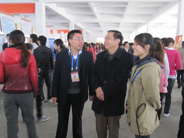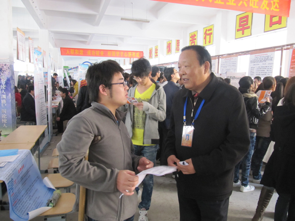供需见面会现场,许多招聘企业和单位的面试区都排起了长长的队伍,志愿者们也指引着各招聘单位和应聘人员到达相应的地点,会场内一派热闹欢腾的景象。学院院长蒋玉珉,党委书记方世权、副院长计承光等院领导也都亲自到场视察,并与用人单位进行了亲切交谈。各系部负责人及毕业班辅导员也坚守在招聘会现场,并不时地给应聘学生一些建议指导。在招聘企业展位面试中,有的应聘学生严肃认真,一丝不苟;有的谈笑风生,镇定从容;有的踌躇满志,胸有成竹。许多学生择业时看重的不仅仅是工资待遇,更注重的是个人在企业的发展空间。