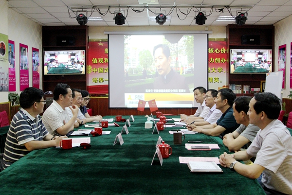 6月26日下午,安徽财贸职业学院党委书记耿金岭,党委副书记、院长刘银国,院长助理、组织人事处处长吴晓光,办公室主任谢峰一行莅临绿海学院就深化校际合作、双创师资培训等工作进行了深入交流。绿海学院董事长陈孝云,党政领导江传瑞、嵇建珍、张以亭等参加座谈交流。