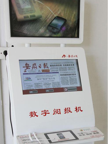 据悉,此批数字阅报机属于新型触摸屏阅读终端设备,由安徽日报报业集团组织研发并安装。数字阅报机利用3G网络,每日上传当天的《安徽日报》电子版和安徽各地采编的即时新闻。可随时通过触摸屏点击阅读《安徽日报》现刊和往期过刊。此外,数字阅读机还具备实用信息查询,提供手机软件应用下载等多种便利服务功能。