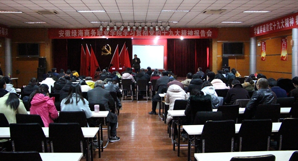 12月21日下午,365集团党的十九大精神宣讲团举办宣讲报告,学院思政部主任、宣讲团成员齐礼根作宣讲报告,党委副书记张以亭主持报告会。
