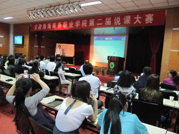 本次大赛是在各系初赛的基础上各推荐1名教师共5位老师参赛。信息技术系的邓赵明老师,用慷慨激昂的语言、形象多样的幻灯片使一门枯燥乏味的计算机理论知识变得趣味盎然。管理系赵英子老师用理论与实践相结合方法,通过案例分析为我们讲述了一场实用的商务谈判课程。来自基础教育部的刘九香老师,生动形象的讲述了大学语文中千古美文《春江花月夜》,通过图景和生动的语言使参加观摩的教师们陶醉在她所描述的美景中。整场比赛各参赛老师的精彩讲解都富有感染力,不时引起全场雷鸣般的掌声。