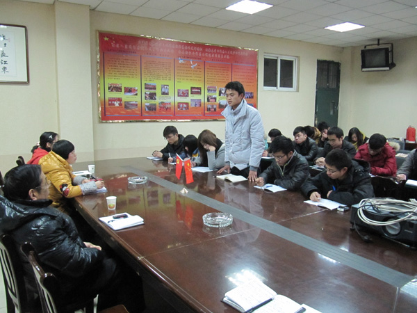 2012年12月20日下午,我院召开入党积极分子学习十八大报告座谈会,会议由党办主任助理刘敏主持,学院党委书记方世权、宣传处负责人苏勇、团委副书记孙业萍以及来自四系一部20余名入党积极分子参加了此次座谈会。