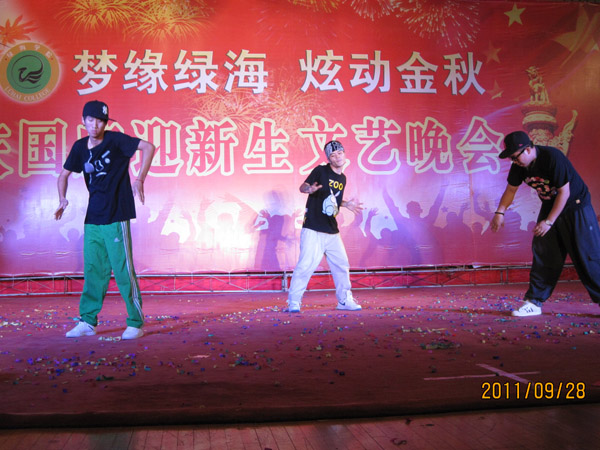 计承光副院长宣布晚会开幕后,晚会以一场别开生面的老生、新生对话拉开序幕。一开场,朗诵《远航》就为现场观众带来了巨大的震撼,声如洪钟,声情并茂,将大家的心紧紧联系在一起。热情奔放的歌曲串烧,悠远动听,不同声色的联唱,充分呈现了交融和谐之美。T台秀《礼仪展示》展示了绿海的十项特色,也展现了绿海学子的青春活力。印度舞《欢乐的跳吧》在轻松欢愉的舞曲中展现曼妙的舞姿,带给观众别样风情,台下掌声雷动。随后相声表演《老生新生》幽默逗趣,博得满堂喝彩。街舞《just dancing》,动感激情的动作与音乐的完美融和,充分展示了大学生的青春活力。黄梅戏《十五的月亮为谁圆》,在喜庆欢快的音乐中,唱出了黄梅戏的浓郁清新,清韵绕梁,歌声悠扬,掌声还未平息,古典舞《梦忆江南》又携古风古韵滚滚而来,旋律雅致优美,舞姿轻灵舒缓。独唱《北京颂歌》用洪厚的声音,稳健的台风,娴熟的演唱技巧征服了现场观众。