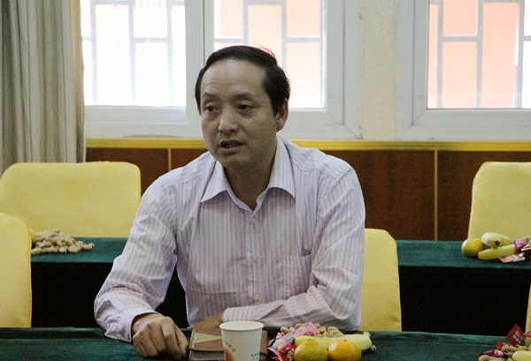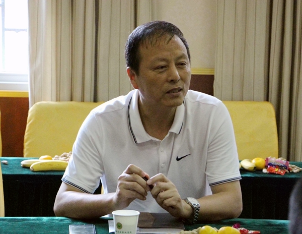 熊名文在座谈会上讲话。他表示,教师要做好两方面的“教”,一方面是教书,要求能说;另一方面是教练,要求会干,只有将两者有效结合起来,才能成为一个好老师,成为学生成长道路上的引路人。