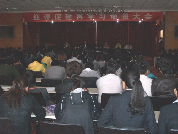 计承光副院长在动员报告中宣讲了评估工作的重要意义,阐述直接收益者是我们的每一位学生。指出,评估工作涉及每一位学生,人人有责,要进一步端正态度、提振精神;进一步争做文明学生、遵守校园各项纪律、挑战陋习、共建文明,以实际行动迎接评估,接受评估专家访谈;要进一步学习评估有关材料,了解评估有关知识和情况。最后,他还希望所以学生干部要积极行动起来,团结一心、群策群力、振奋精神,为学院顺利通过评估做出自己应有的努力和贡献。