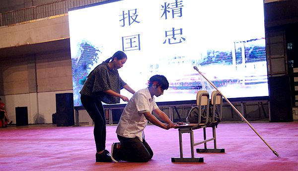 率先出场的代表队,在古筝的伴奏下,同学们齐声诵读《弟子规》,意境深远。“慈母手中线,游子身上衣。临行密密缝,意恐迟迟归。谁言寸草心,报得三春晖”。《游子吟》感人肺腑的场景告诉我们,莫要等到树欲静而心不止,子欲养而亲不待,才后悔没能尽到孝心;“爱我中华,传承经典”,响亮的口号在体育馆响起,接着出场的是旅游系的同学们,“记得吗,你祖先的名字叫炎黄?”提醒现代青年不忘祖先,树立文化自信。吟诵穿插,在“泛爱众”部分,用吟唱的形式表达,使整个现场气氛达到高潮;大军压境,两军争霸,仁孝在心头,忠义不敢丢,少年岳飞,精忠报国,诵读经典,忠孝仁义,作为压轴的信息系同学,随着口号,缓缓呈“义”字散开,与众不同的是,他们实行传统礼仪中的坐礼,这是一个大胆的决定,也是万花从中一点绿,响亮的诵读,默契的配合,使他们在过程中游刃有余,一曲终了,顶礼经典……