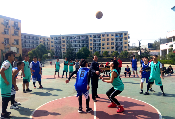 据悉,第九届“迎新杯”篮球赛首场比赛由会计系1队和信息系2队之间角逐,学院党委副书记张以亭抛球。