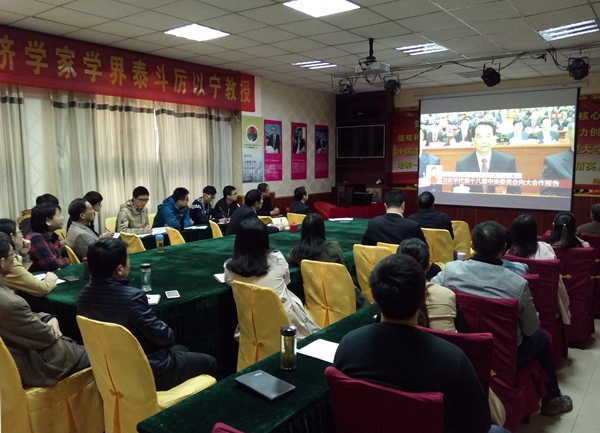 大家纷纷表示,十九大的召开令人振奋,备受鼓舞,要自觉把思想统一到十九大精神上来,把力量凝聚到实现十九大确定的目标任务上来,把满腔热情转化为推动学院科学发展的动力,满怀激情的投入到工作和学习中去,以实际行动学习、宣传、贯彻十九大精神,砥砺奋进,继往开来,不断开创工作新局面。(苏 勇)