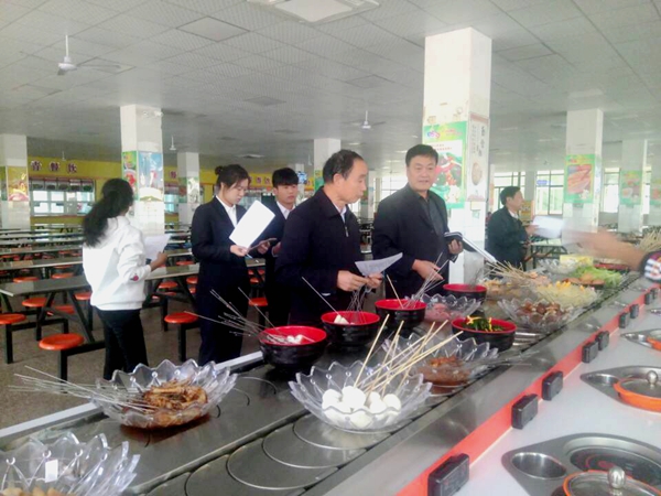 为确保秋季学院食堂食品安全,做好餐饮保障工作。10月13日下午,由总务处牵头,工会参与,教师代表、伙食管理委员会成员组成的检查组,对学院食堂安全卫生管理工作进行检查评比。检查组对学院食堂一、二、三楼所有大、小窗口的食品安全及食品采购索票、索证等方面工作进行抽查。