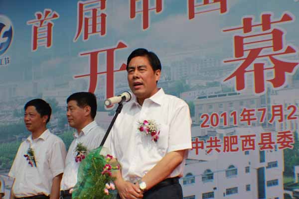 肥西县县委书记陈晓波在我院展位前与常务副院长丁元生亲切交谈