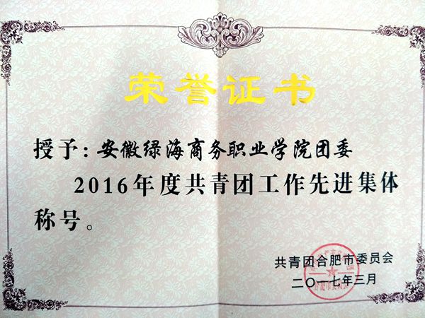 安徽绿海商务学院团委荣获2016年度共青团工作先进集体称号