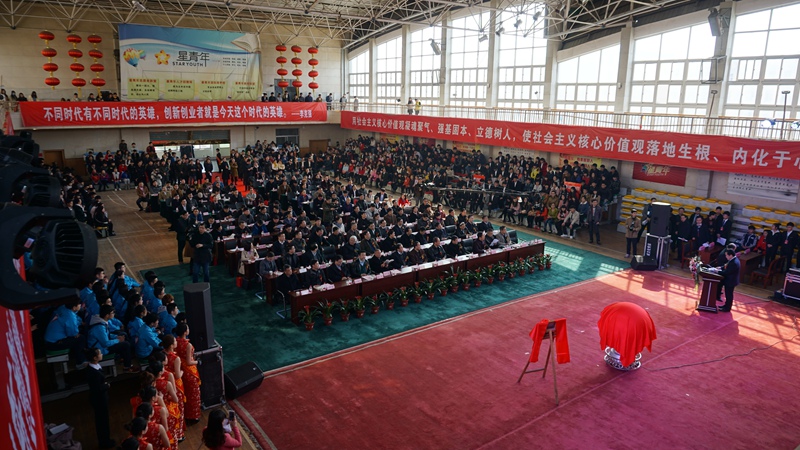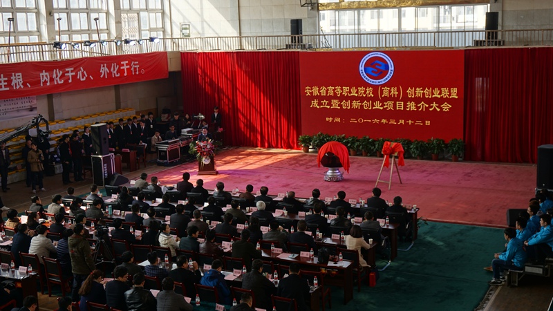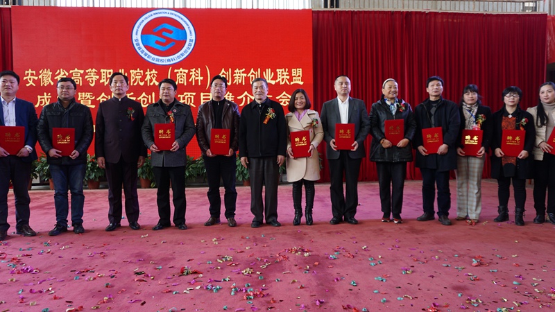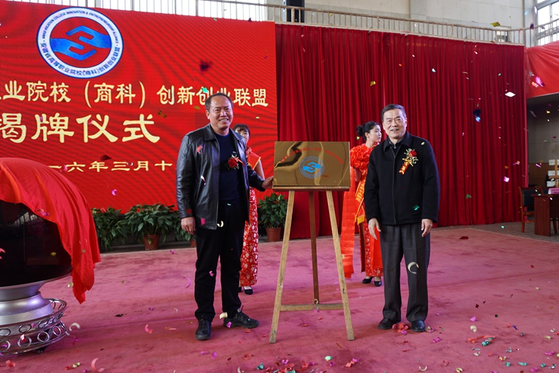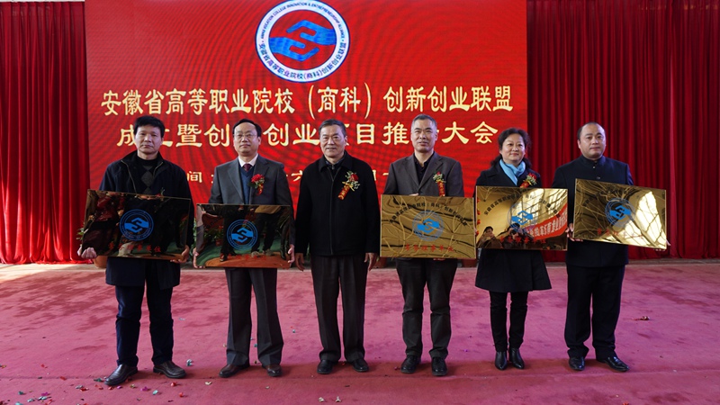 安徽省委宣传部副部长刘飞跃,安徽省职成教学会会长、联盟名誉理事长金辉共同为“安徽省高等职业院校(商科)创新创业联盟”揭牌