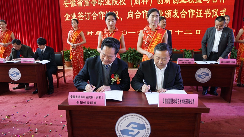 联盟副理事长、安徽工商职业学院院长李雪与合作企业代表签署战略合作协议