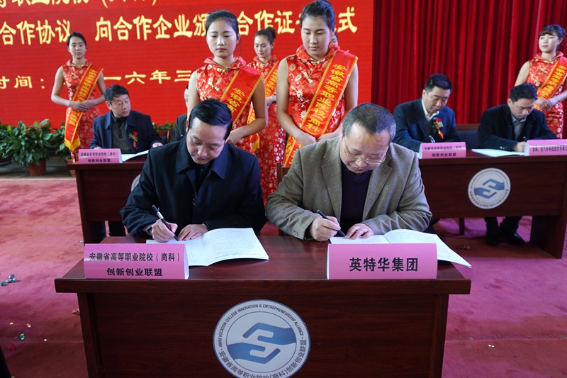联盟副理事长、徽商职业学院院长张韶与合作企业代表签署战略合作协议