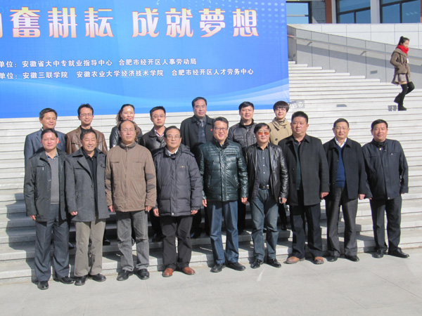 为进一步做好我院大学生就业工作,多渠道获取就业信息,11月28日上午,我院就业指导中心主任陈万华和就业指导教研室副主任马超应邀带领部分大三毕业生前往三联学院,参加由省大中专就业指导中心与经开区人事劳动局联合主办的“勤奋耕耘·成就梦想”大学生专场招聘会。