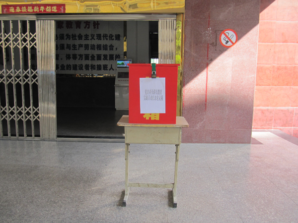 学院在办公楼前设置“党的群众路线教育实践活动征求意见箱”,用于收集广大师生的意见和建议。