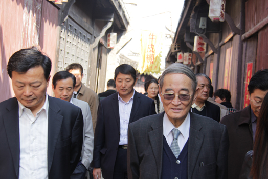 在省委书记张宝顺等主要领导、北大安徽校友会领导及陈孝云董事长的陪同下厉以宁教授考察了合肥教育文化场所,李府、三河等名胜古迹。