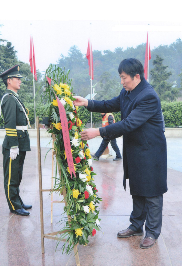 12月25日,陈孝云董事长在韶山毛泽东铜像广场,代表绿海学院向毛泽东主席铜像敬献花篮
