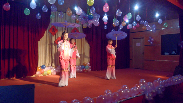 元旦晚会在唯美的民族舞中拉开帷幕。内容和形式上有师生自编自导的歌曲、舞蹈和小品,晚会现场气氛热烈祥和。