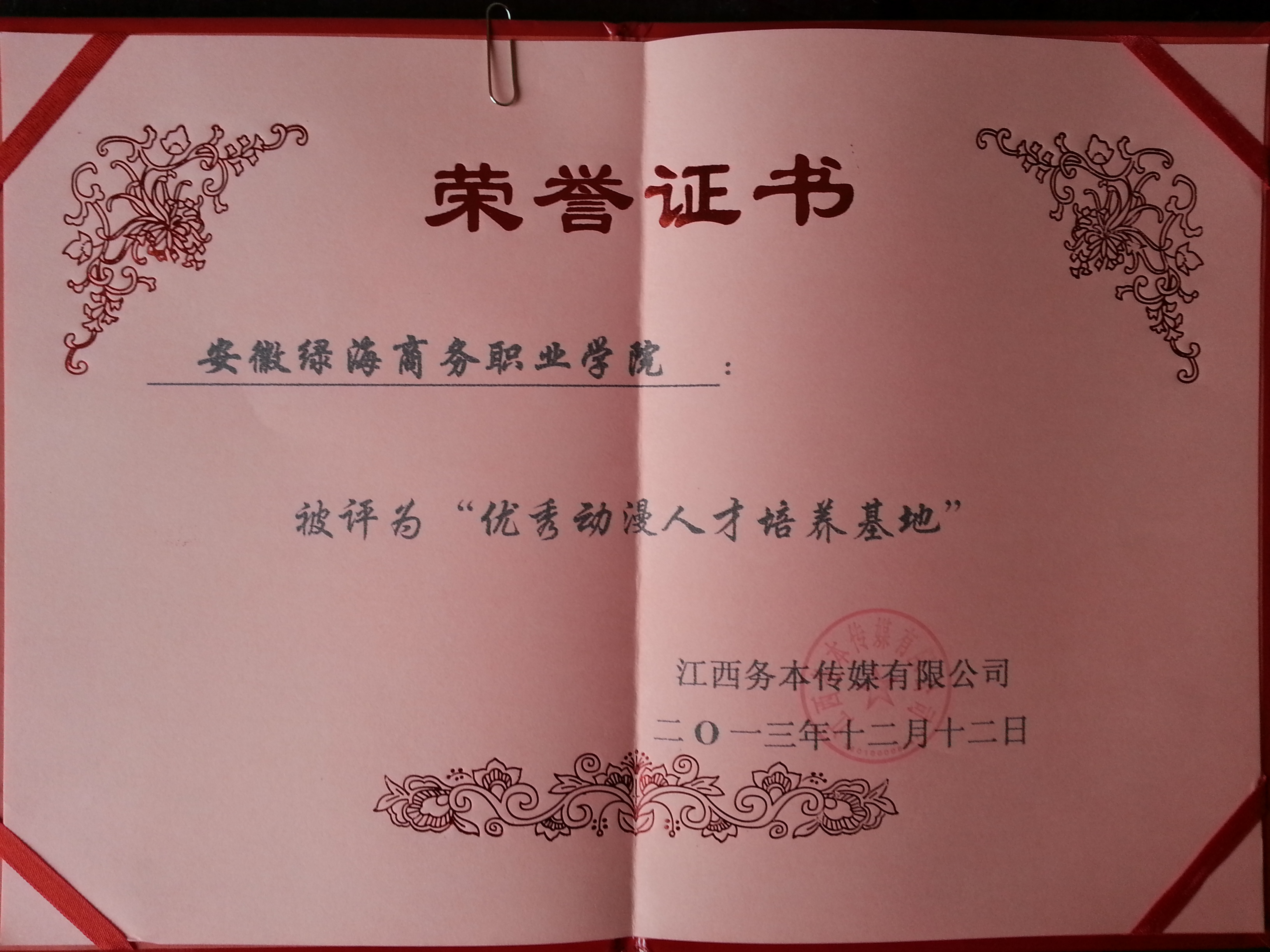 随着动漫产业的发展,该公司已成为全国大院校的动漫实习实训基地,在本年度实习生人才质量评估中,我院被评为“优秀动漫人才培养基地”。