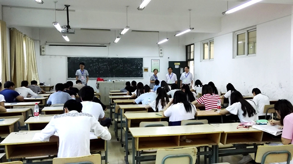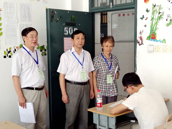 学院领导认真查看了各考场的考试试卷、学生答题状况和考场纪律;向考务人员详细询问了考试科目、试卷出题程序及考试总体安排等事项;针对近期雨多闷热的天气,领导们对学生、监考老师及考务人员的身心健康十分关心,要求做好相应保障措施。