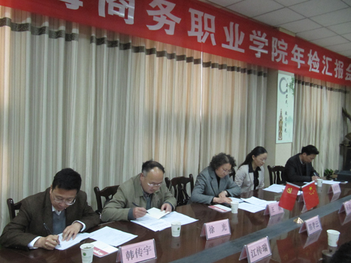 院长许崇正教授结合学院2014年自查报告,向工作组着重汇报了学院坚持社会主义办学方向,依法办学,规范育人;加强党建和思想政治教育;建立健全管理体制,完善法人治理机构,规范管理;坚持“人才强校”,培养“双师”素质教师队伍;进一步改善办学条件;健全教学管理体系,确保教学中心地位;学生工作成效显著;重视安全稳定工作;加强资产与财务管理;多举措促进毕业生就业,提高就业质量;存在的问题及努力方向等十一个方面工作。