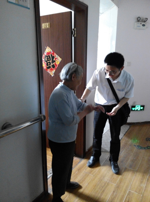 清晨,迎着朝阳,志愿者们怀着兴奋的心情,带着满满的慰问品,来到市童话名苑敬老院。志愿者们把慰问品分发给了老人,清扫房间,整理内务,和老人唠起了家常,聆听他们谈及年轻时的往事……