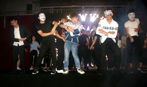 化妆舞会现场,工作人员精心准备了自己设计的服饰、面具,热情接待所有到场嘉宾。从刘灿灿老师街舞表演开场到校园歌手吴孝杰等的尽情演唱,全场的气氛都high起来了。即兴的街舞表演、拉丁表演、T台秀、互动游戏、现场抽奖等环节调动了全场的参与热情,主持人的串场使节目达到一个又一个的高潮。