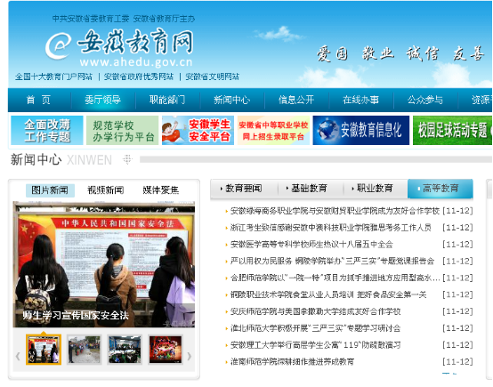 今日安徽教育网首页头条报道我院