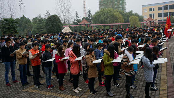我们在场的各位同学来自于全省各地,你们当年的高中同学现在也绝大多数分布在全国各地,经历着他们的大学生涯。也许有人在读本科,有人和我们一样站在高职院校的校园里。无论是就读于哪一所大学,有一点,大家一定要明确:从大一入学的那一刻起,大家实际上都是在同一条起跑线上。只要你肯努力,将来丝毫不比合工大、安大的学生差,甚至有可能不比北大清华的学生差;如果不勤奋,在哪都是虚度年华。