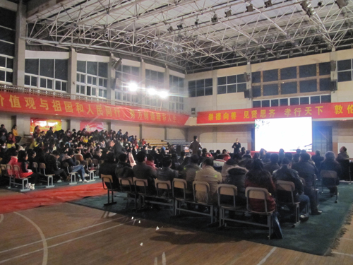 12月18日晚,我院在体育馆二楼举行“弘扬优秀传统文化、践行当代核心价值观”——21世纪的人财–六维心态的主题报告会。香港孔子学院名誉院长徐洪磊及陪同的专家团,学院董事长陈孝云,学院常务副院长丁元生,学院副董事长、副院长陈孝江,副院长张以亭,全院教职工和学生都参加了报告会。本次报告会由副院长张以亭主持。