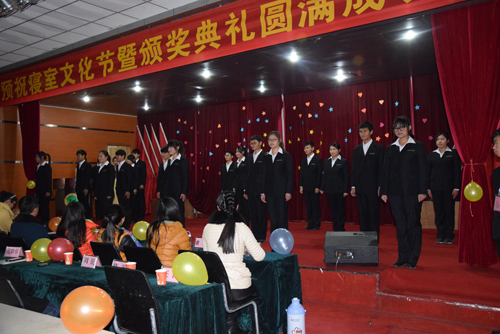 颁奖晚会的过程中,穿插了自律会成员精心编排的创意舞蹈《快乐崇拜》、“歌曲串烧”、话剧《不屈的生命》、“古今诗歌朗诵”和手语操《相亲相爱一家人》。丰富多彩的节目,精心评选的奖项,引得全场师生的阵阵掌声。最终,以获奖寝室代表与领导老师们的合影为本次活动划上了圆满的句号。
